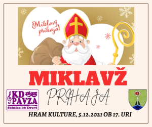 Kulturno društvo Pavza v sodelovanju z Občino Selnica ob Dravi organizira prihod Miklavža, 5. 12. 2021 ob 17. uri v Hramu kulture Selnica ob Dravi.